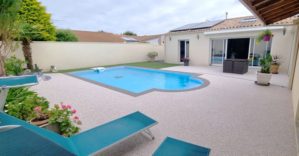 « Très satisfait du résultat. Produit de bonne qualité. Conforme à l’attente. Réalisation dans les délais, pas de surprise. Revêtement réellement perméable, marche agréable pieds nus, idéal pour la piscine car antidérapant. »